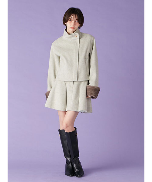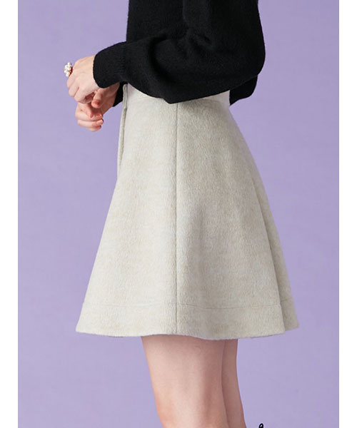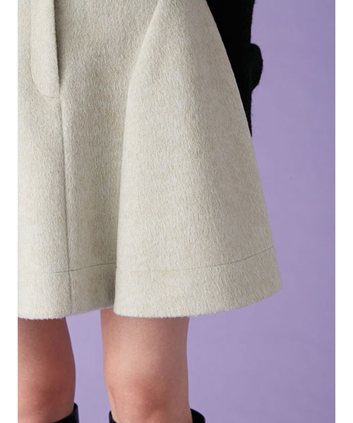 ウール混のシャギー素材を使用し、見た目にも温かみのある風合いでシーズンムードを高めます。女性らしい柔らかさと上品さを兼ね備えた素材感です。