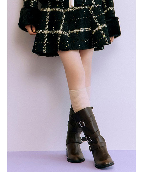 「LILY BROWN」定番のフィット&フレアシルエットミニスカートが今季も登場。フロントのタックは少し流れのある角度に設計し、甘くなりすぎない大人の印象に仕上げました。シャツブラウスをインしてきれいめに、スウェットやコンパクトなニットトップスを合わせてミニマルに、と幅広いスタイリングで活躍。同素材のコート(LWFC255125)とのセットアップコーデもおすすめです。