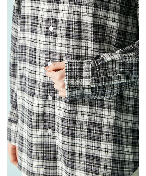オリジナルで作り上げた先染めチェックのコットンネル素材。柔らかく、肌なじみの良い風合いで、季節の変わり目にも重宝します。