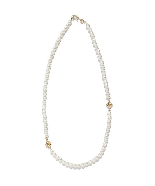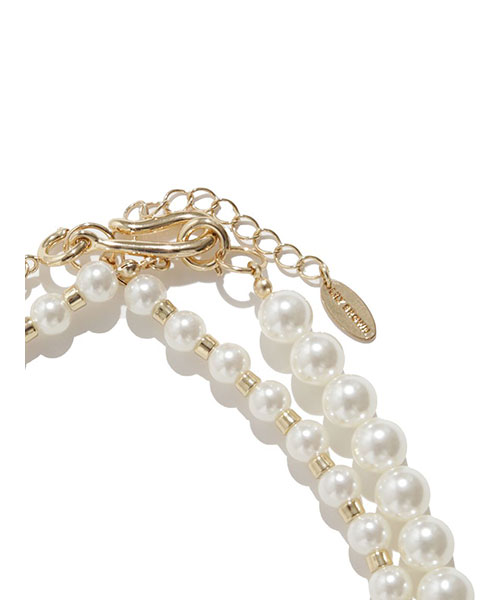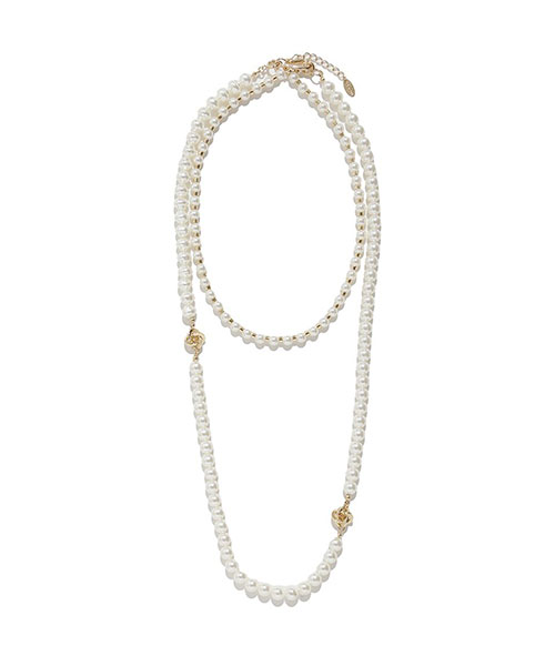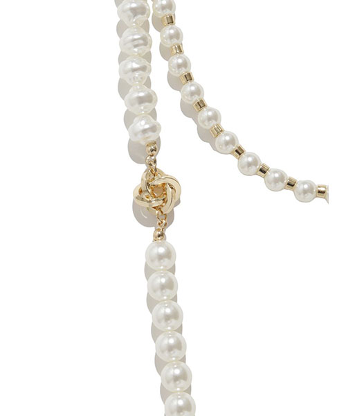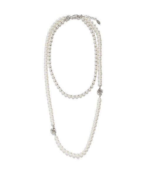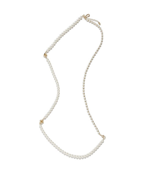 大きさや形の異なるパールを組み合わせた、華やかで表情豊かなロングネックレス。内側と外側のチェーンをセパレートで使えるマルチウェイ仕様で、その日のスタイリングに合わせて自在にアレンジ可能です。Tシャツやニットなどシンプルなコーディネートにひとつ加えるだけで、こなれ感と上品さをプラスできます。
