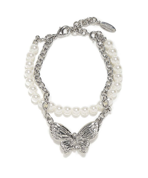 ブランドアイコンであるバタフライモチーフを主役にした、ANNA SUIコラボの華やかなブレスレット。重厚感のあるバタフライと上品なパールを組み合わせ、高級感のある手元を演出します。バタフライとパールは取り外して単体でも使える3WAY仕様で、気分やシーンに合わせたアレンジが可能です。