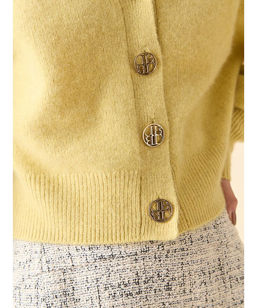 【上品なルックスと肌触りの良さが魅力のロゴボタンカーディガン】【Design/Styling】