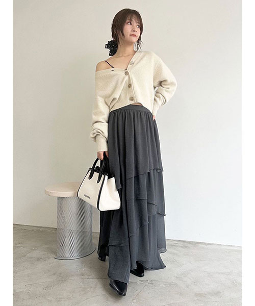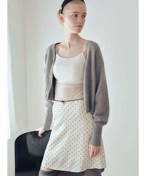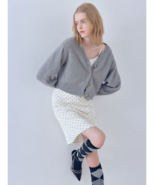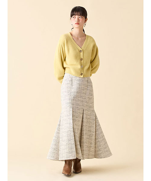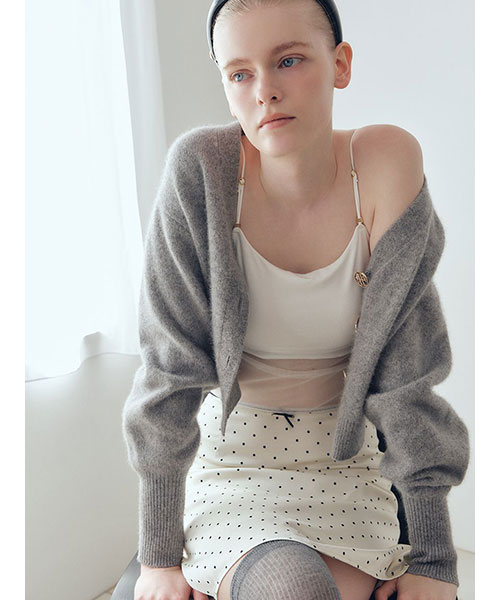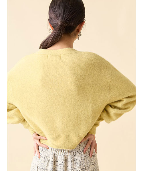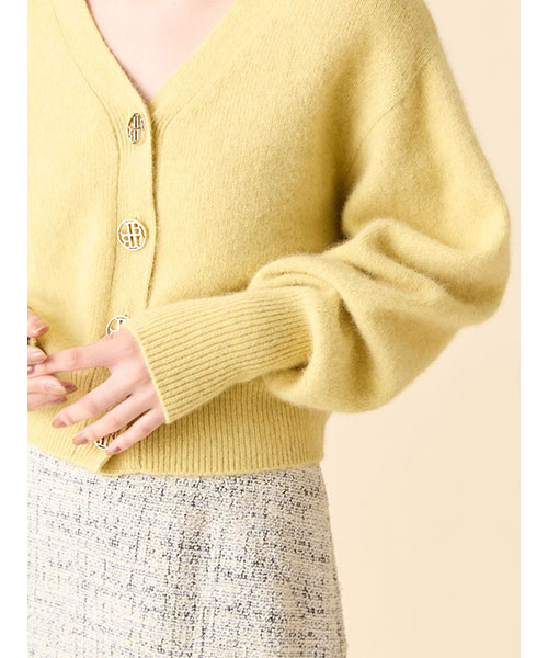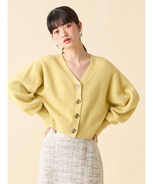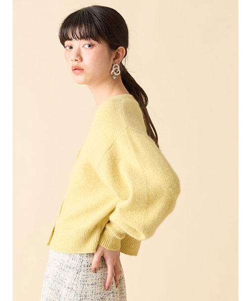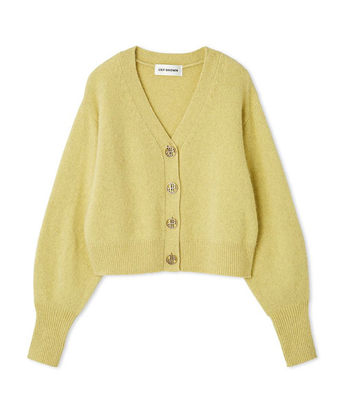 フォックスを使用した上質素材のカーディガン。毎年人気のジャストサイズでデザインし、羽織りとしてはもちろんボタンを留めてトップスとしての着用もおすすめです。「LILY BROWN」オリジナルの、ヴィンテージライクなロゴボタンで今季らしいアクセントを加算しました。上品なルックスとリュクスな肌触りで、タイムレスに長く愛用いただける逸品です。