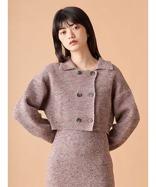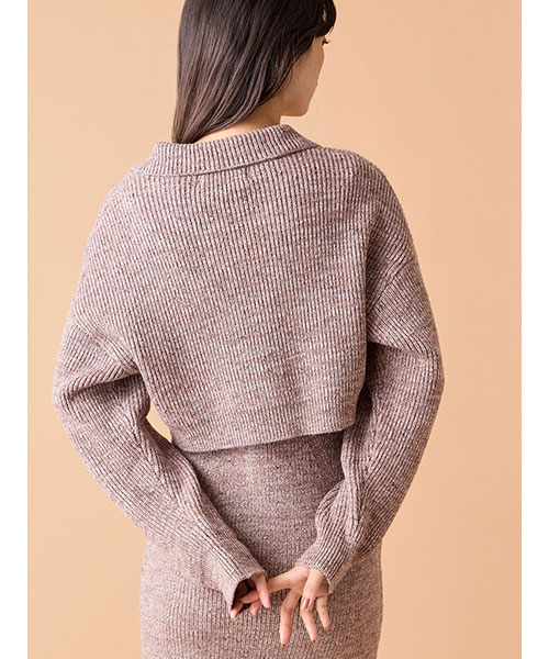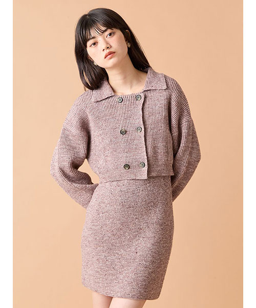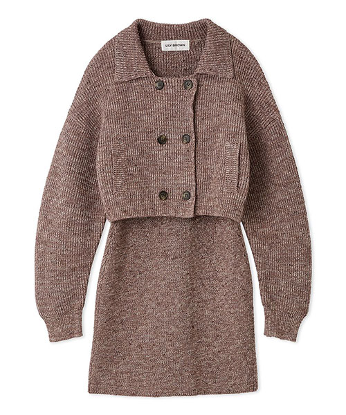 ニットジャケットとミニワンピースがセットになった着映え力抜群のアイテム。ジャケットは大きめの襟が顔まわりに抜け感を添え、前を閉じればトップス風に着られる2WAY仕様。ワンピースは程よくタイトなシルエットながら、ジャケットと同じ片畦編みの厚みでボディラインを拾いすぎず安心して着用いただけます。セットアップではもちろん、それぞれ単品使いでもスタイリングの幅が広がる万能セットです。
