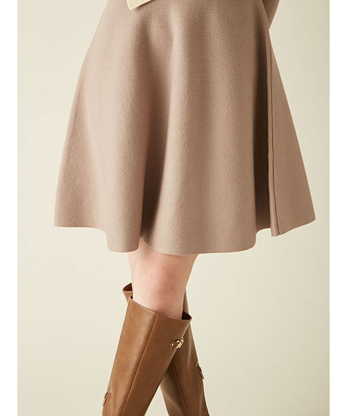 ほどよく厚みがありながら、柔らかな風合いのニット素材を使用。体のラインを拾いすぎず、美しいシルエットをキープしてくれる優秀素材です。