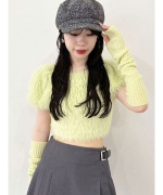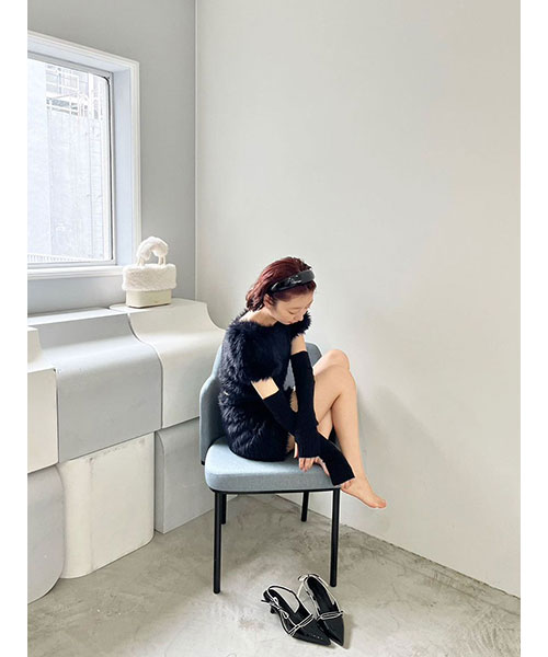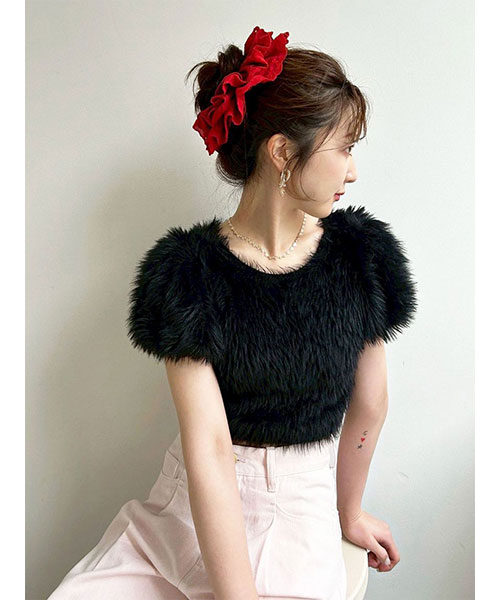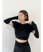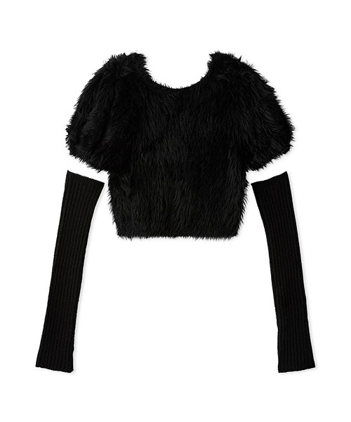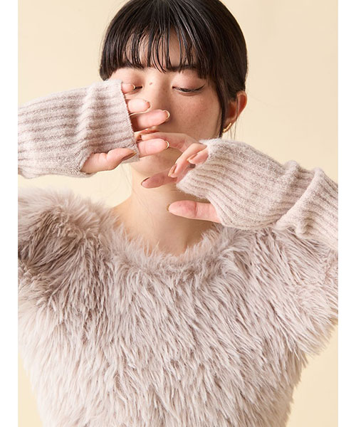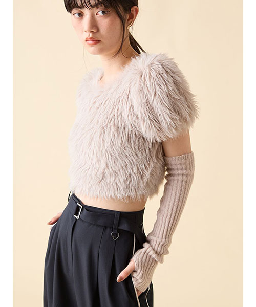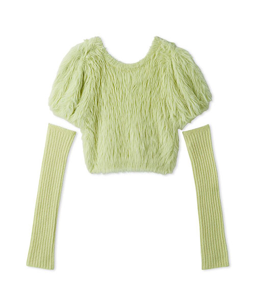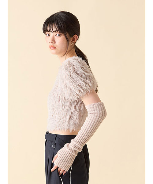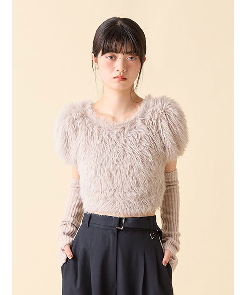 アームウォーマー付きフェザーヤーンコンパクトトップス