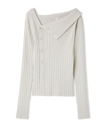 目を惹くアシンメトリーな襟元が特徴のニットトップス。デコルテに程よい抜け感をつくり、ネックレスやイヤアクセとのレイヤードも映えるデザインです。ボディ部分はランダムリブで表情を加えながら、すっきりとしたシルエットに。大人のきちんと感を保ちつつ、トレンドも押さえた1枚は、デニム合わせのカジュアルからオフィスシーンまで幅広く活躍します。