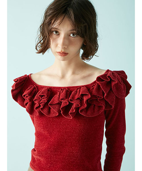 【ドラマティックに映えるモールフリルニットトップス】【Design/Styling】