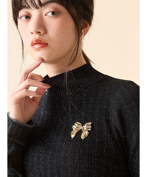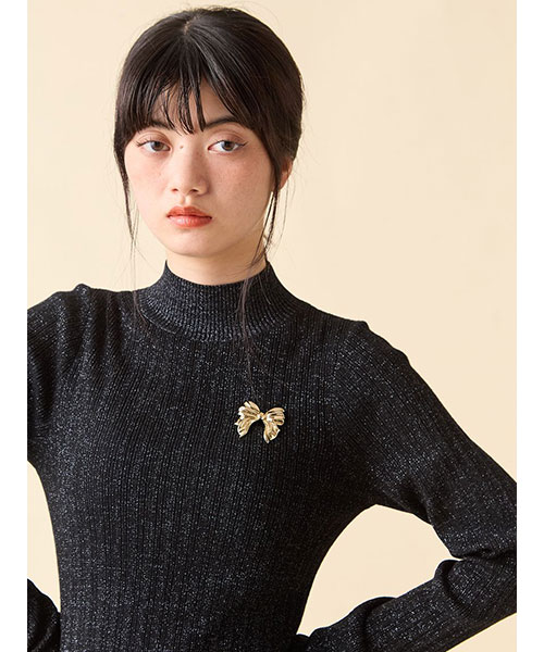 ラメ糸を織り込んだリブ素材は、柔らかさと伸縮性を兼ね備えた心地よい肌ざわり。デイリーに活躍しながら、さりげない華やかさを添えてくれる一着です。