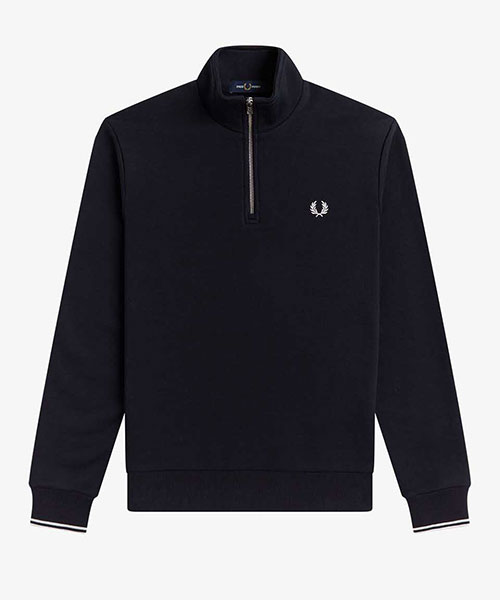 ハーフジップのスウェットシャツ。コットンリッチ素材をブレンドした1枚は、シグニチャーであるフレッドペリーのディテールで仕上げました。BRAND CONCEPT