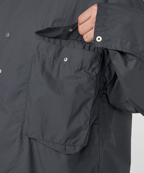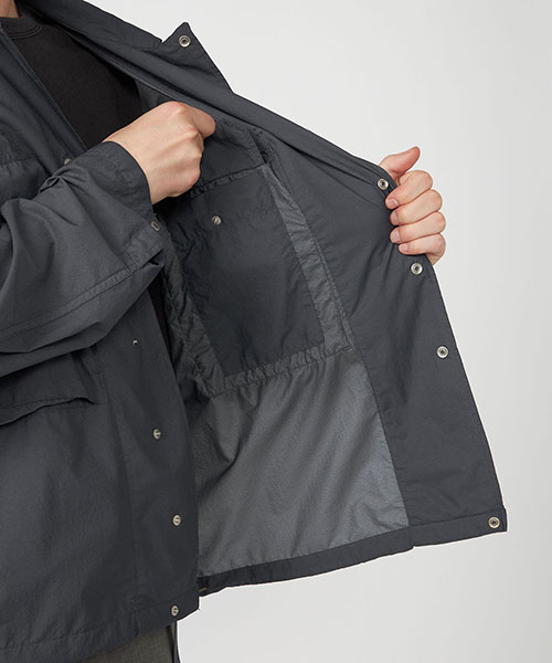 ・2.5レイヤー12デニールナイロンリップストップ生地使用した軽量のフィールドジャケット・非常に軽い仕上がりと肌離れが良い素材
