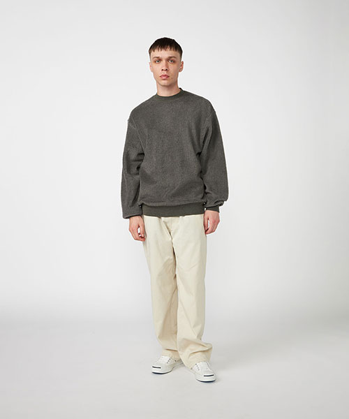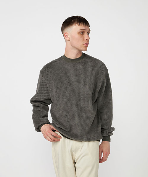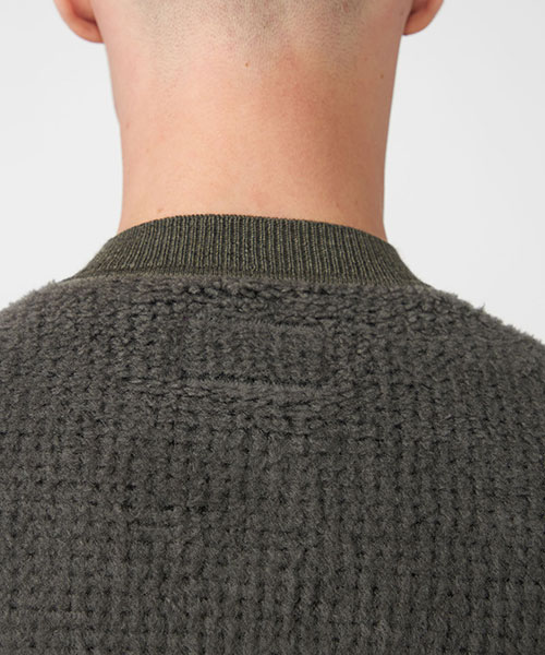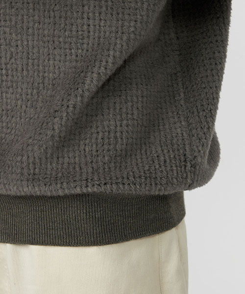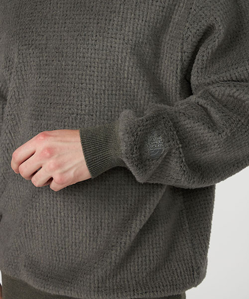 ・POLARTECウールフリースを使用したクルーネックプルオーバー・グリッド構造でデッドエアーを溜めやすく、薄手ながら温かさと通気性を兼ね備えるウールフリースを使用