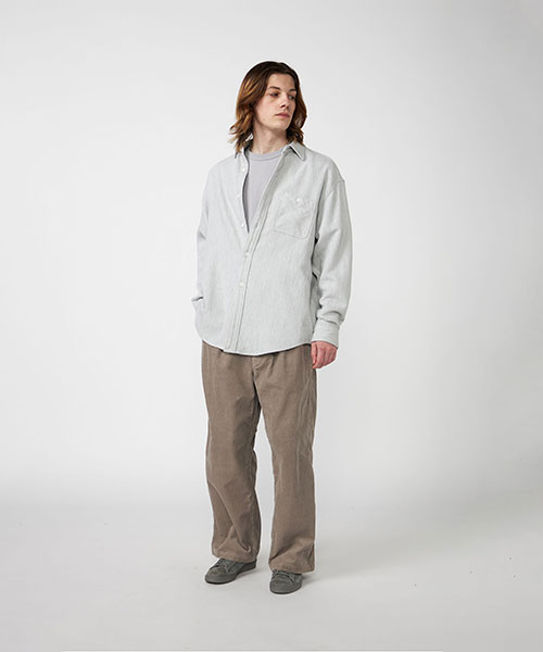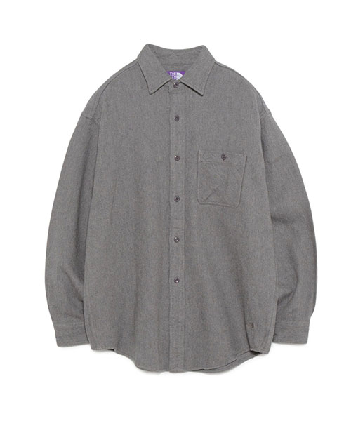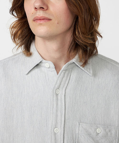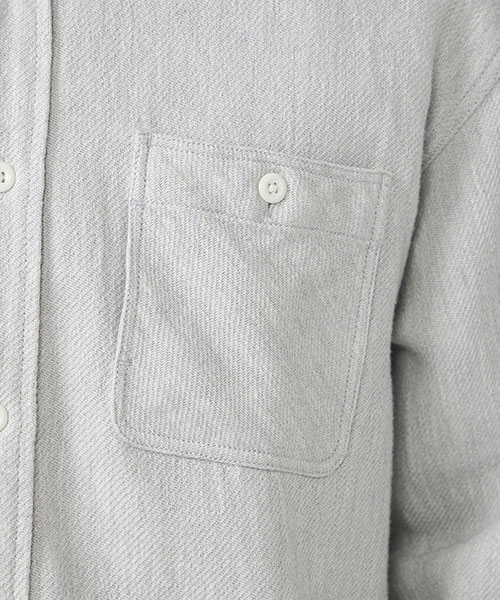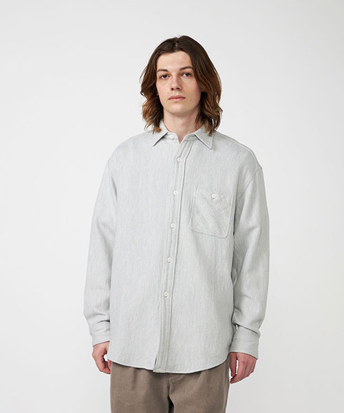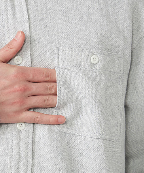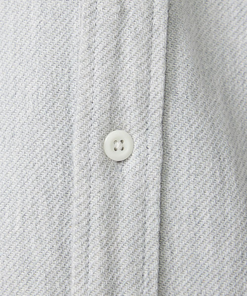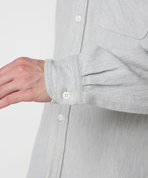 ・オーガニックコットンフランネル生地を使用したレギュラーカラーシャツ・太番手の糸を甘織りすることで、厚みがありながらも柔らかい生地風合い