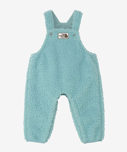 リサイクルポリエステルを使用した、保温性の高いフリースオーバーオール。表面にはかさ高がある毛足の長いボアフリース、肌面には滑らかな肌触りのマイクロフリースをボンディングした生地を採用しています。股下はドットボタンで全開する仕様。肩のベルトはドットボタンでサイズ調節が可能です。