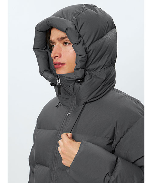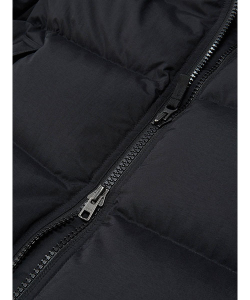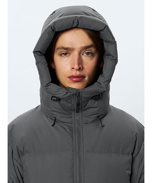 高いバッフル感を持ちつつ、落ち着いたトーンが印象的な、軽い着心地のダウンパーカー。表地にははっ水加工を施した、軽くナチュラルな風合いのリサイクルタスランナイロンを使用。マットな質感の生地に、パッカリングを効かせてスポーティー感を抑え、都市生活に馴染むデザイン感です。中わたは、自然なあたたかさをもたらすクリーンダウン光電子を封入。裏地にGORE-TEX WINDSTOPPER 2層構造を使用し、風の侵入を軽減しています。裾に埋め込み式のコードロッカーを配置し、フィット感の調節が可能です。