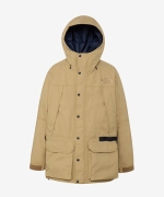 「極力バッグは持ちたくない」という要望から生まれた、手ぶらで子どもとのお出かけを楽しめる、収納力に優れた、抱っこ対応の防水ジャケット。ベビーマグなどかさばる小物もしまえるフロントのマチ付きポケットや、ブランケットやおくるみを収納できる背面の大容量のポケットなど、合計10個のポケットを配置。収納を重視しつつ、ポケットにさまざまな育児用品を詰めても着膨れして見えないデザインに仕上げています。腰まわりには、カラビナでボトルやキャップを取り付けられるDカンやデイジーチェーンを配しています。ベビーカバーは、フロントのドットボタンで装着して抱っこに対応。単体でおむつ替えシートや敷物としても活用できます。非フッ素メンブレンによるePE GORE-TEX PRODUCTS 2層素材を採用。耐久性の高い70デニールリサイクルナイロンを表生地に使用しています。