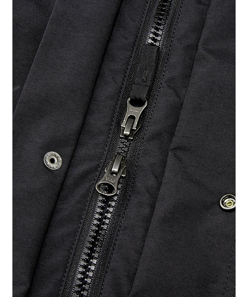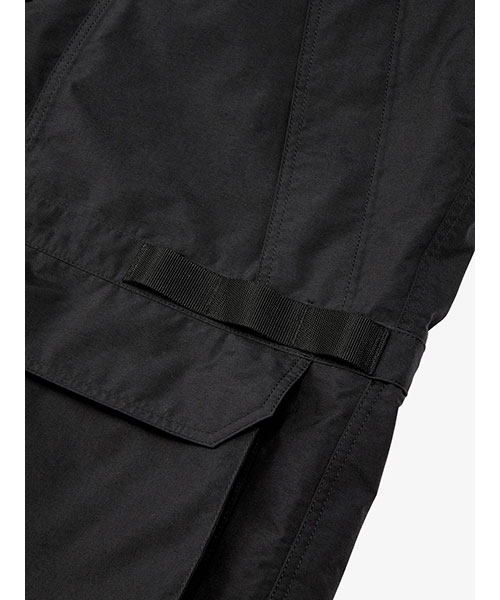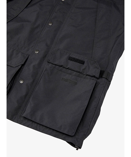「極力バッグは持ちたくない」という要望から生まれた、手ぶらで子どもとのお出かけを楽しめる、収納力に優れた、抱っこ対応の防水ジャケット。ベビーマグなどかさばる小物もしまえるフロントのマチ付きポケットや、ブランケットやおくるみを収納できる背面の大容量のポケットなど、合計10個のポケットを配置。収納を重視しつつ、ポケットにさまざまな育児用品を詰めても着膨れして見えないデザインに仕上げています。腰まわりには、カラビナでボトルやキャップを取り付けられるDカンやデイジーチェーンを配しています。ベビーカバーは、フロントのドットボタンで装着して抱っこに対応。単体でおむつ替えシートや敷物としても活用できます。非フッ素メンブレンによるePE GORE-TEX PRODUCTS 2層素材を採用。耐久性の高い70デニールリサイクルナイロンを表生地に使用しています。