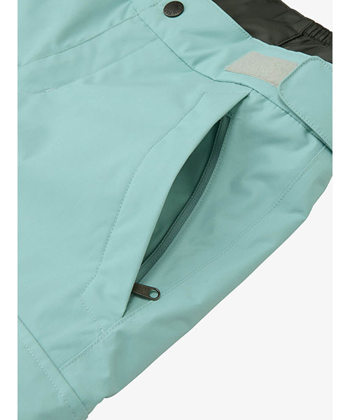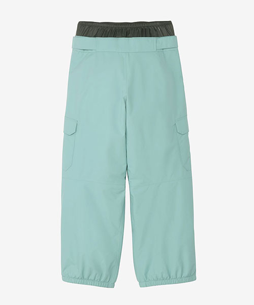 キッズスノーウエアのエントリーモデル。オーバーサイズシルエットの中わた入りパンツです。表地には防水透湿性に優れたナイロン2層構造を採用。中わたには独自開発の保温素材・HEATSEEKERを封入。軽量で密度があるポリエステルの中わたで、あたたかさを高めています。ウエストはスノーカフが着き、雪の浸入を軽減。ウエストの面ファスナーでフィット感の調節が可能です。両サイドには、小物の収納に便利なファスナーポケットとカーゴポケットを配置。裾にファスナーが付き、子どもが自分で着脱がしやすい仕様です。