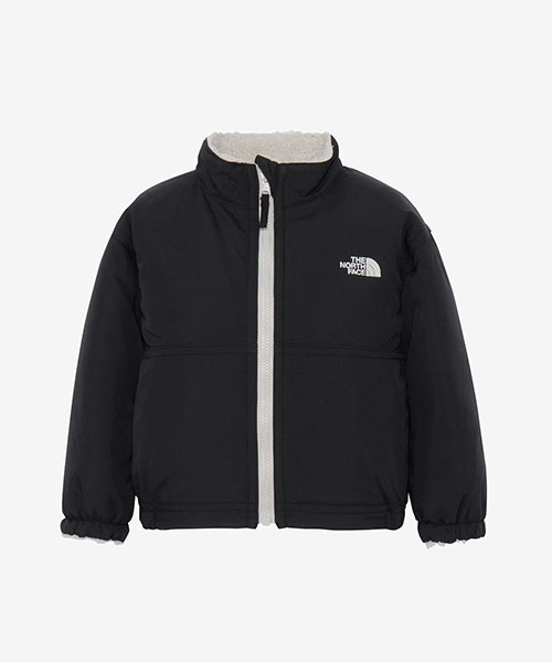 リバーシブルの薄中わた入りフリースジャケットのベビーモデル。フリース面は毛足のあるシェルパフリース、布帛面は軽量ではっ水性のあるリップストップナイロンを採用。