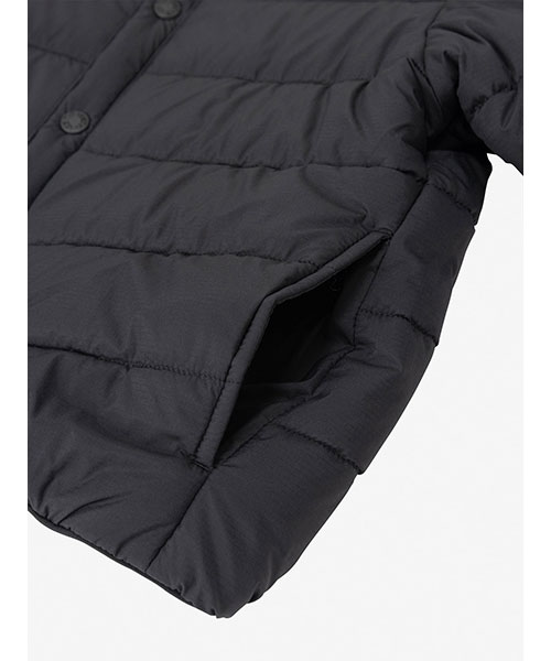 アウトドアで活用できる機能性を、デイリーユースで使いやすいデザインに落とし込んだ中わた入りカーディガン。リサイクル素材を使用した、環境に配慮した商品です。表地はしなやかで軽量なナイロン。生地にはっ水加工を施し、多少の雨は弾きます。中わたには、軽量でかさ高性に優れた蛇腹状の板わたを採用。コンパクトに収納でき携行に便利なスタッフサック付き。