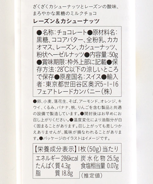 フェアトレードチョコ/レーズン&カシューナッツ 50g