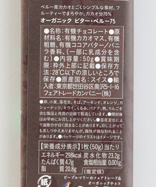 フェアトレードチョコ/オーガニック ビター・ペルー75・50g