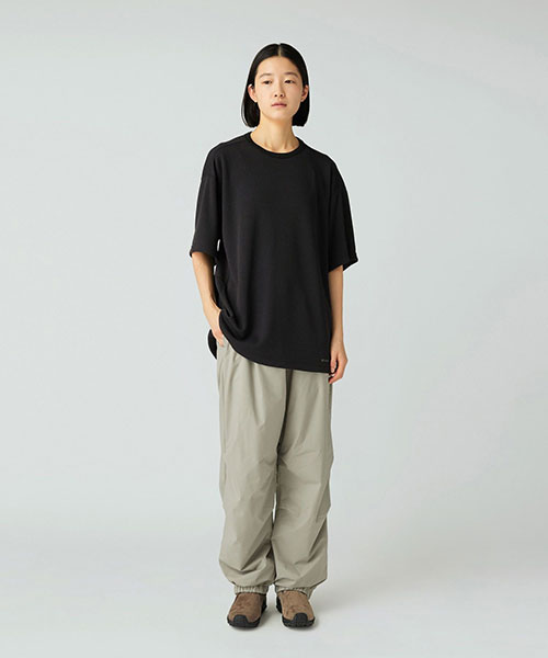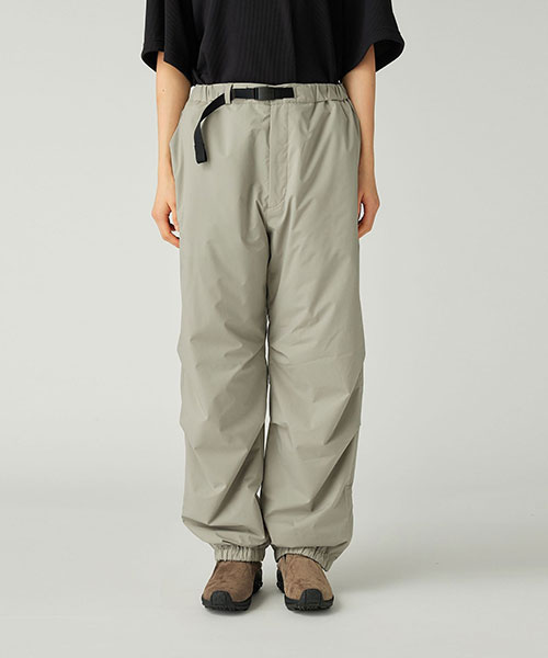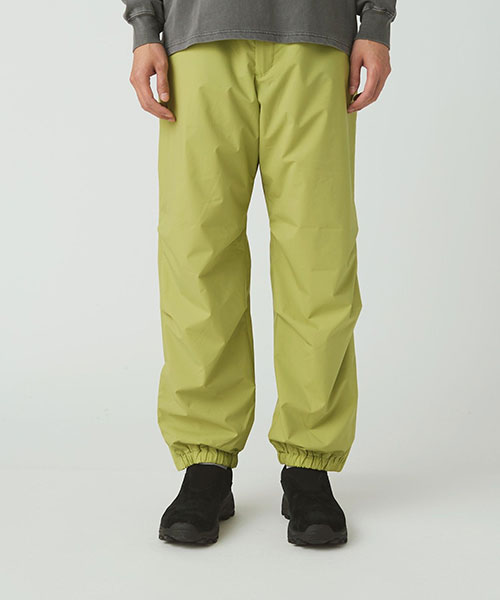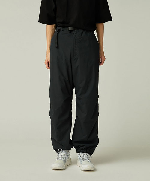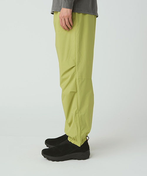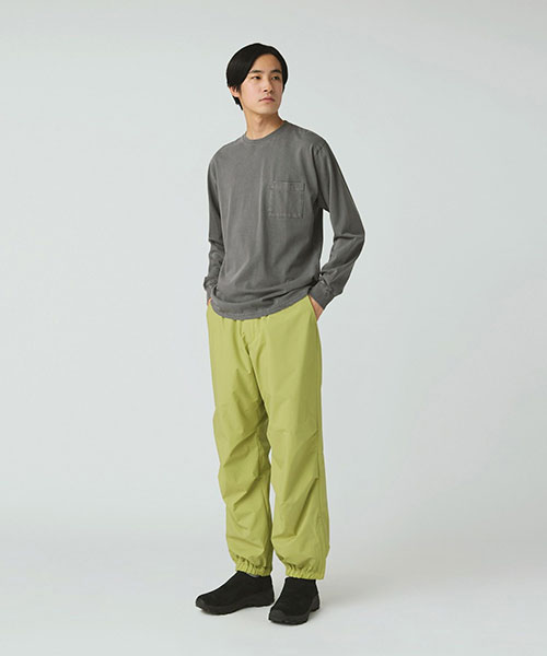 腰まわりにゆとりを持たせ、裾に向かってストレートに落ちるリラックスシルエットにブラッシュアップしたロングパンツ。ウエスト&裾は、ゴムシャーリングで快適さと着脱のしやすさを両立。ウエストはウェイビングテープにオリジナルアジャスターを採用した調整ベルト付きで、裾はサイドファスナー付きです。適度なリラックス感で、スウェットパンツのような使い方がおすすめ。同シリーズのジャケットを合わせた、スタイリッシュなセットアップルックも楽しめます。