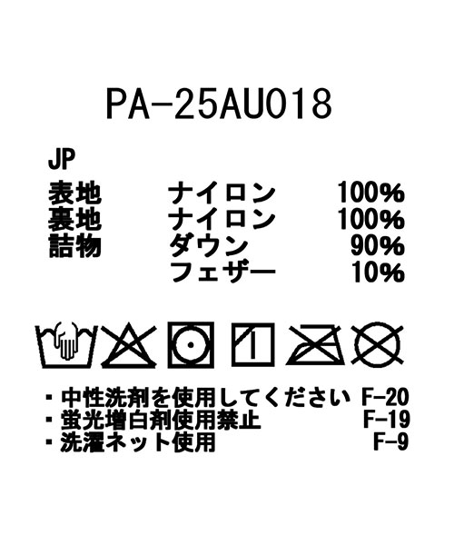 素材 | SHELL:100% NYLON/LINING:100% NYLON/FILLING:DOWN(MINIMUM 90%DOWN) |