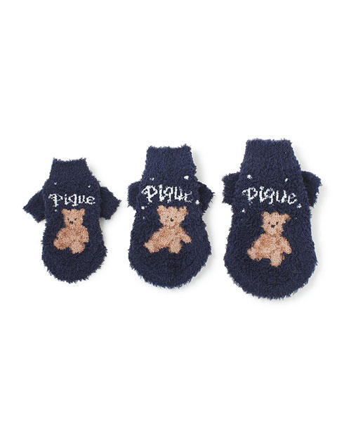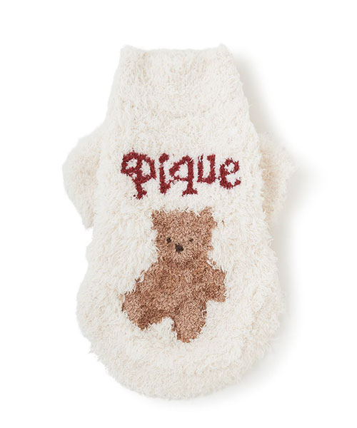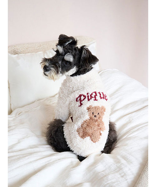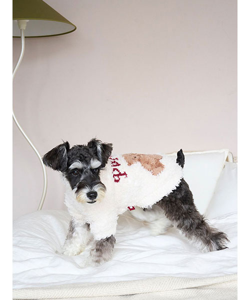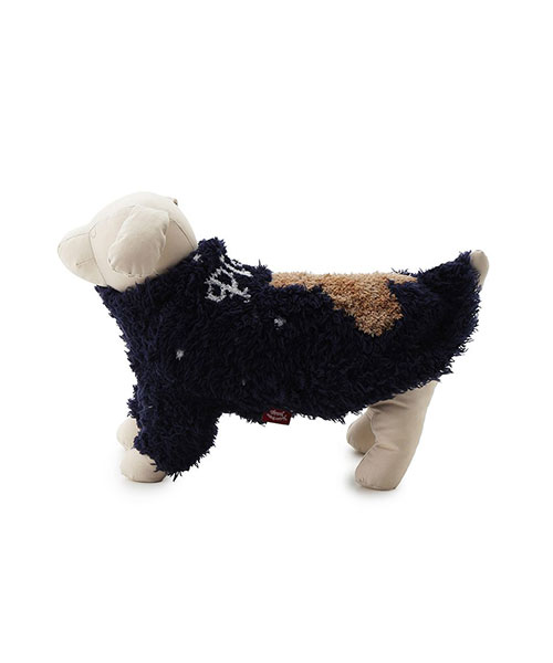 家族や友人、大切な誰かと過ごす温かなホリデーシーズンに寄り添う、スノーベアシリーズのドッグ長袖プルオーバーです。毛足の長い’ジェラート’素材を使用し、座っているベアとその周りに舞っている雪をジャガードで表現。ハイネックの長袖なので、寒い時期のお散歩にもおすすめのアイテムです。大きく入ったキャッチーなロゴジャガードもポイント。色はアイボリー、ネイビーの2色をご用意しました。オーナー様のルームウェアとお揃いでコーディネートしていただけます。