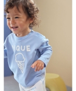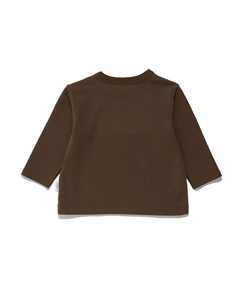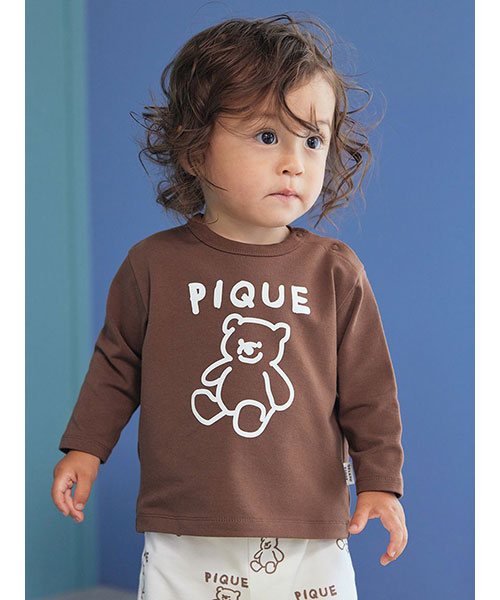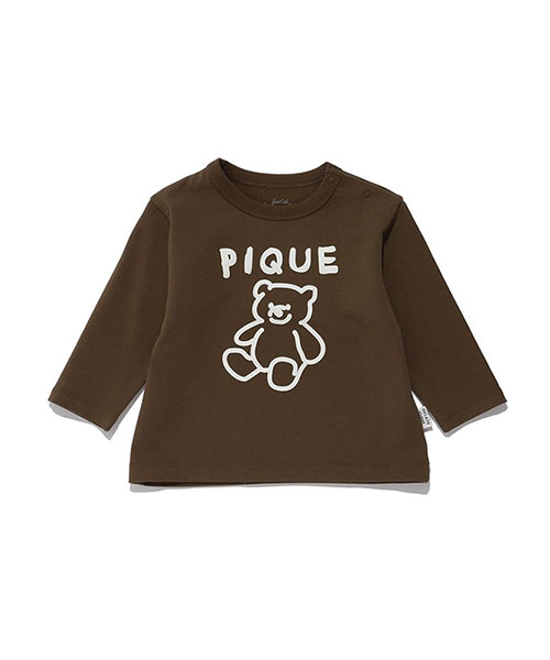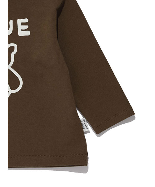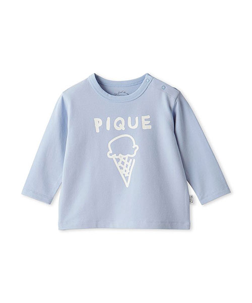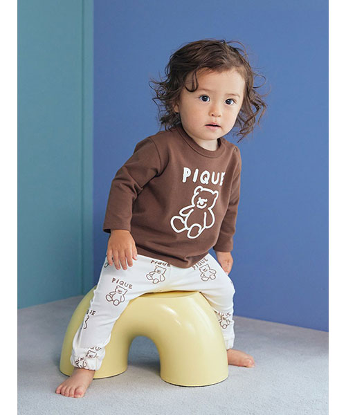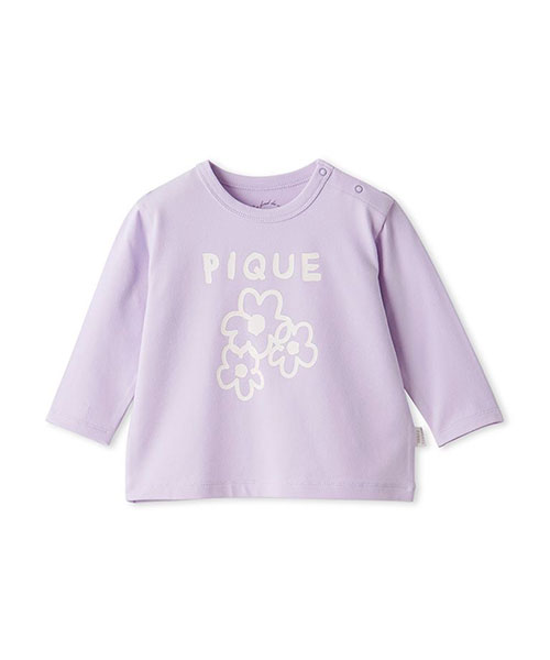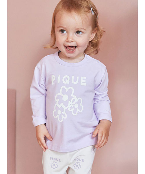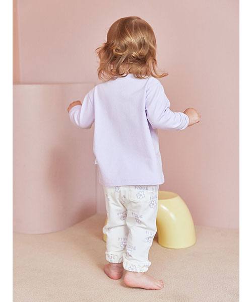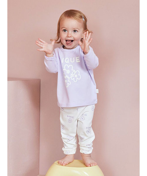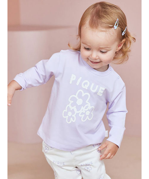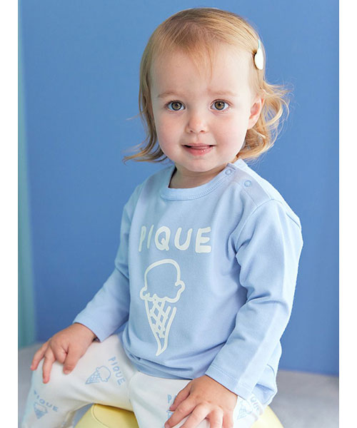 落書きのような軽いタッチのモチーフが可愛い、デイリーに楽しめるペイントシリーズです。ベア、フラワー、アイスといったキャッチーなモチーフをワンポイントでプリントしたBABYサイズのロングTシャツ。しなやかなベア天竺で動きやすく仕上げ、着脱しやすい肩スナップボタンも付けました。色はベア柄のブラウン、フラワー柄のラベンダー、アイス柄のブルーの全3色。同シリーズのロングパンツやスムーズィー素材のトラックジャケットと合わせたり、KIDSアイテムとのリンクコーディネートもお楽しみいただけます。