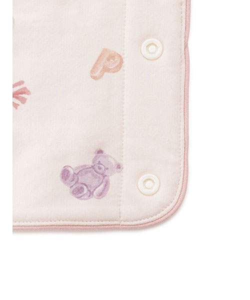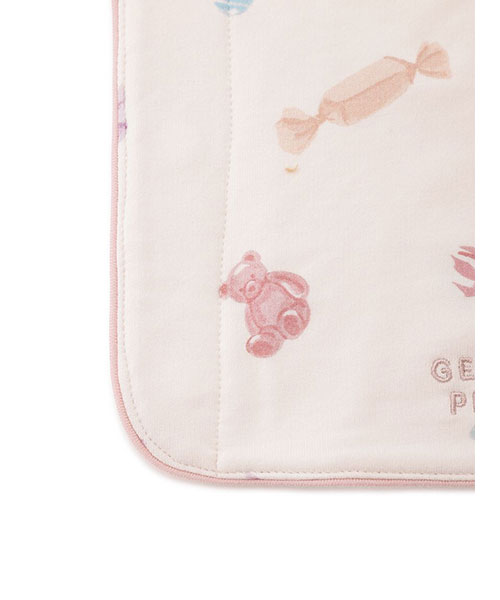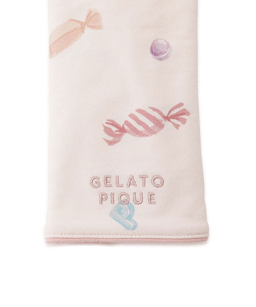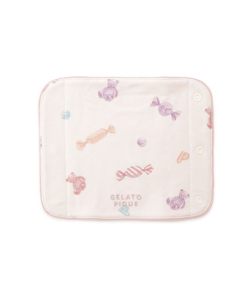 gelato piqueらしいベアやロゴモチーフのカラフルなキャンディを散りばめた、HAPPYな総柄プリントのBABYサッキングパッドです。柔らかく適度な厚みのあるコットン混のインレイ素材を使用。フロントにワンポイントで刺繍を入れ、縁に配色のパイピングを付けました。同シリーズのルームウェアや小物と組み合わせて、ギフトにもおすすめのアイテムです。