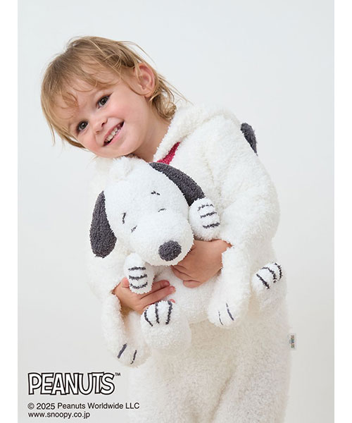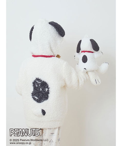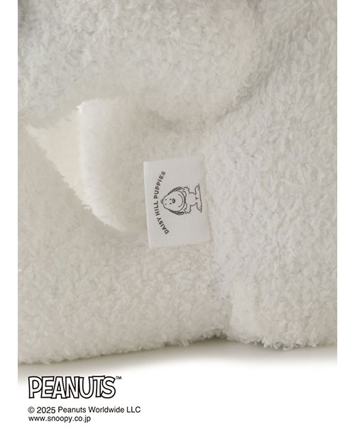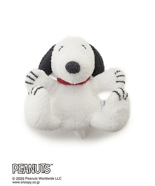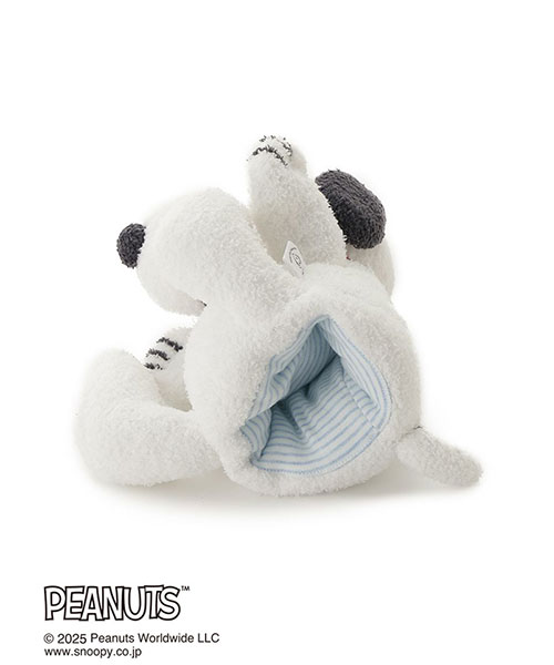 ふんわり軽い’ベビモコ’素材を使用した、スヌーピーのパペット。にっこりした可愛らしい表情と、手をいれてパペットととして使用できるのもポイントです。