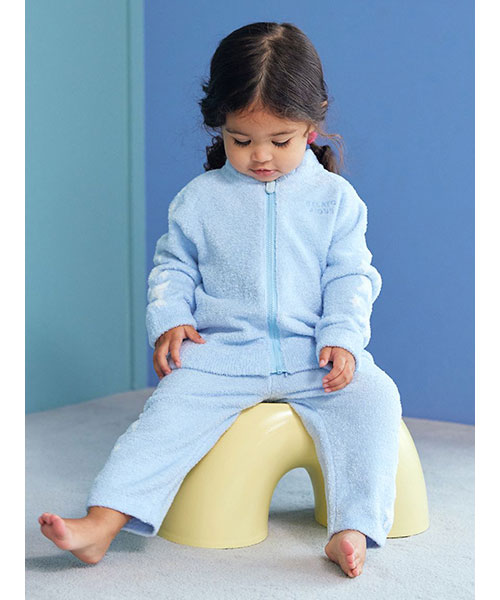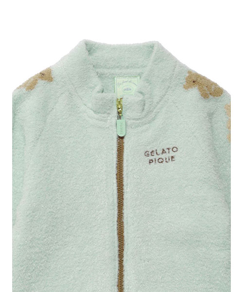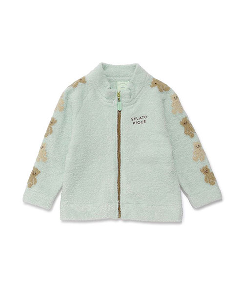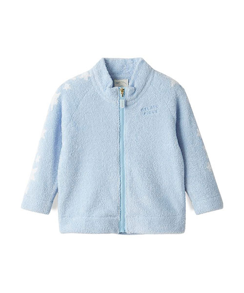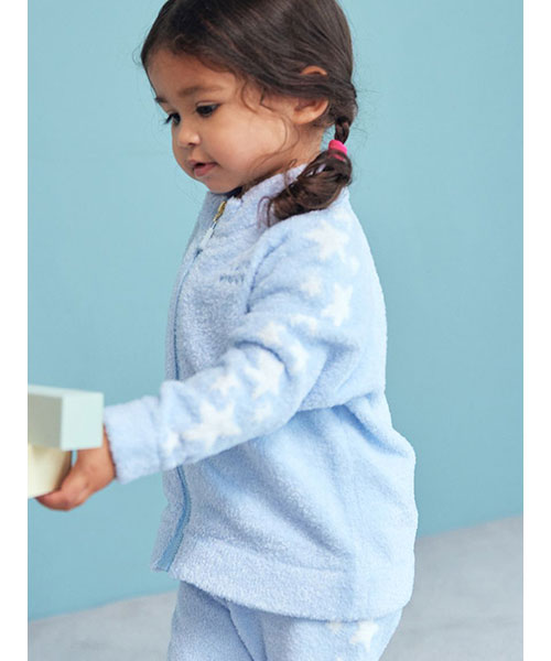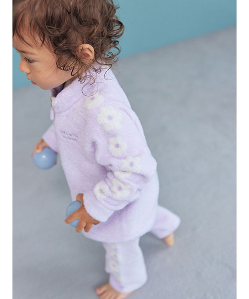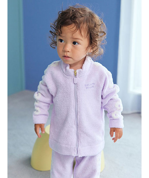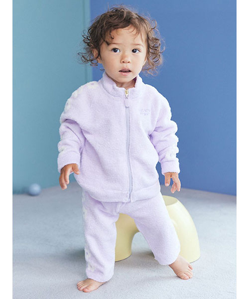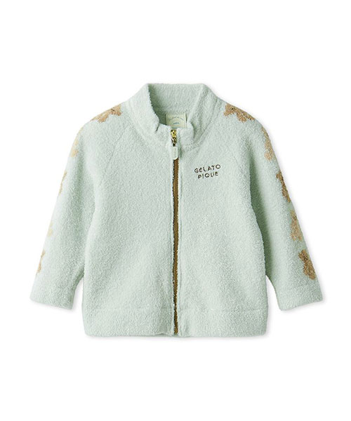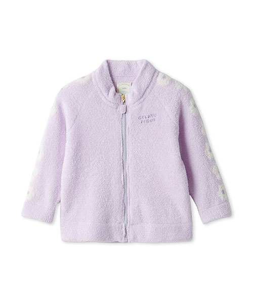 トレンドのスポーツテイストを旬のカラーリングで表現したシリーズ。袖にライン状のジャガード柄を入れた、キャッチーな存在感のトラックジャケットです。汗を素早く吸う吸水機能を備えているので、暑さが残りやすい秋の羽織りにちょうど良い素材感。ジャガード柄は色ごとに異なる絵柄になっています。左胸のロゴ刺繍とファスナーの配色でアクセントを効かせました。色はベア柄のミント、フラワー柄のラベンダー、スター柄のブルーの3色展開。同シリーズのトラックパンツや同時期に展開するペイント柄カットソーシリーズを合わせたり、KIDSアイテムとのリンクコーディネートもお楽しみいただけます。