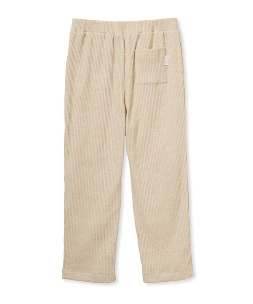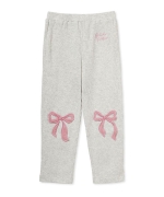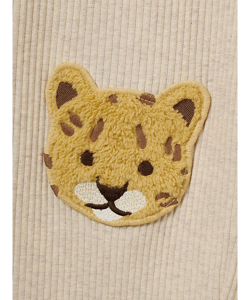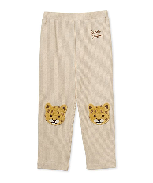リボン、クルマ、ヒョウ。子どもたちがときめくモチーフをあしらった、ギフトにもおすすめしたいKIDSシリーズです。肌触りの良いリブ素材を使用した細身のストレートパンツ。ひざの部分に、3種類のモチーフをアップリケで表現しました。右後ろにポケットを付け、左腰にワンポイントのロゴ刺繍入り。色はリボンモチーフのグレー、ヒョウモチーフのベージュ、クルマモチーフのネイビーの3色展開です。同シリーズのワンポイントプルオーバーやフリースの羽織り、小物類を合わせたり、BABYサイズとのリンク・コーディネートもお楽しみいただけます。
