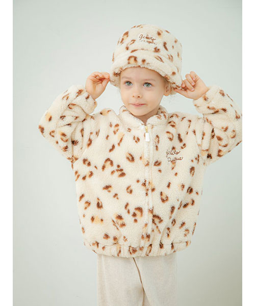 リボン、クルマ、ヒョウ。子どもたちがときめくモチーフをあしらった、ギフトにもおすすめしたいKIDSシリーズです。ふっくら温かな風合いのフリース素材を使用した、お外にも着用していただけるスタンドカラーブルゾン。重ね着しやすいゆとりのあるサイズ感で、胸元にロゴ刺繍を添えました。色はリボン柄のピンク、クルマ柄のブルー、ヒョウ柄のベージュの3色展開。同シリーズのアップリケパンツやワンポイントプルオーバー、小物類を合わせたり、BABYサイズとのリンク・コーディネートもお楽しみいただけます。