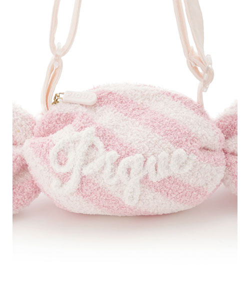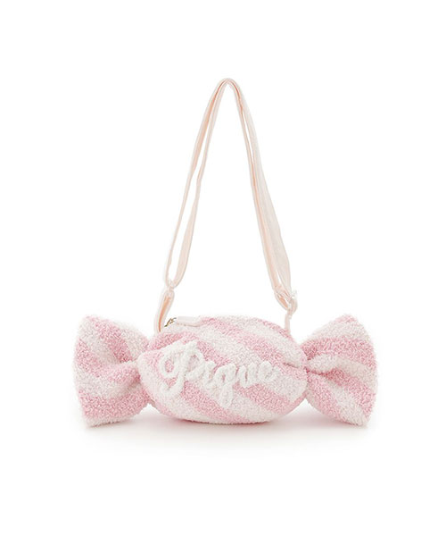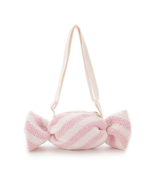 キュートなキャンディをモチーフにした、’ベビモコ’素材のKIDSシリーズ。両端をキュッと絞ったキャンディが、KIDSサイズのポシェットに変身しました。小さなおもちゃやお菓子を入れて、毎日のお出かけをHAPPYに演出。大きなロゴ刺繍がキャッチーな仕上がりです。同シリーズのルームウェアや小物、同時期に展開するベビモコカラフルボーダーシリーズに合わせたり、ギフトにもおすすめです。