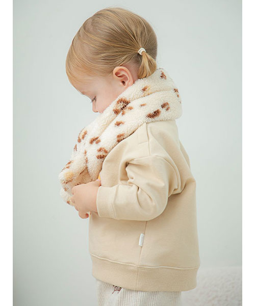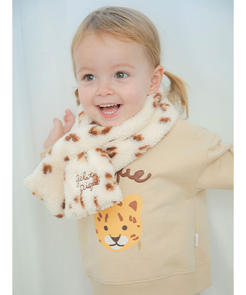 リボン、クルマ、ヒョウ。子どもたちがときめくモチーフをあしらった、ギフトにもおすすめしたいKIDSシリーズです。ふっくら温かな風合いのフリース素材を使用した、首元の防寒対策に重宝するティペット。大きく入れたロゴ刺繍がキャッチーな印象を放ちます。色はリボン柄のピンク、クルマ柄のブルー、ヒョウ柄のベージュの3色展開。同シリーズのフリースウェアやワンポイントプルオーバーを合わせたり、BABYサイズとのリンク・コーディネートもお楽しみいただけます。