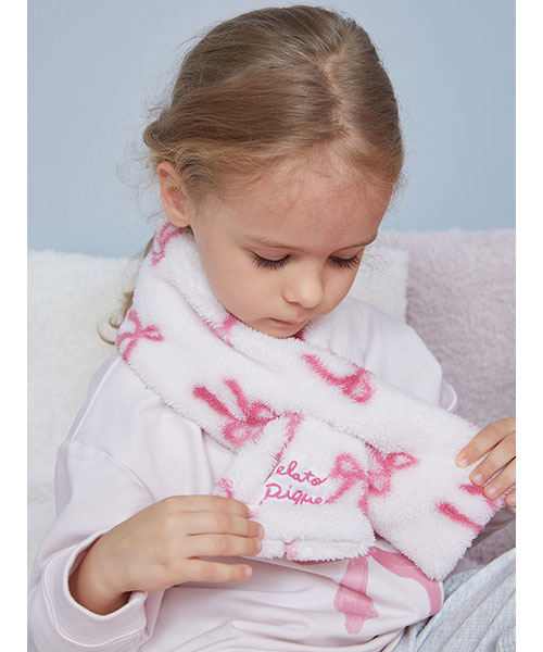 リボン、クルマ、ヒョウ。子どもたちがときめくモチーフをあしらった、ギフトにもおすすめしたいKIDSシリーズです。ふっくら温かな風合いのフリース素材を使用した、首元の防寒対策に重宝するティペット。大きく入れたロゴ刺繍がキャッチーな印象を放ちます。色はリボン柄のピンク、クルマ柄のブルー、ヒョウ柄のベージュの3色展開。同シリーズのフリースウェアやワンポイントプルオーバーを合わせたり、BABYサイズとのリンク・コーディネートもお楽しみいただけます。