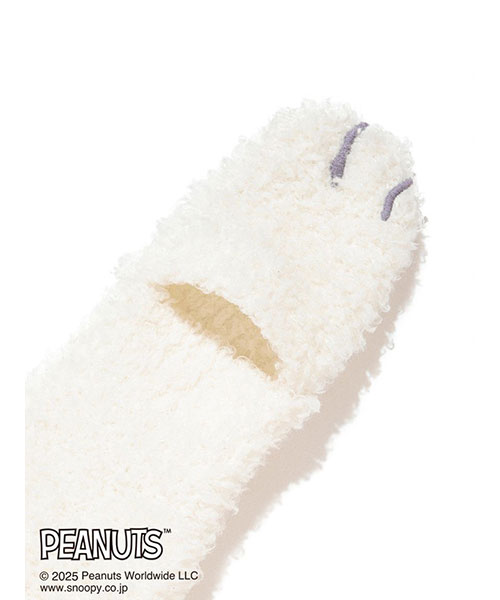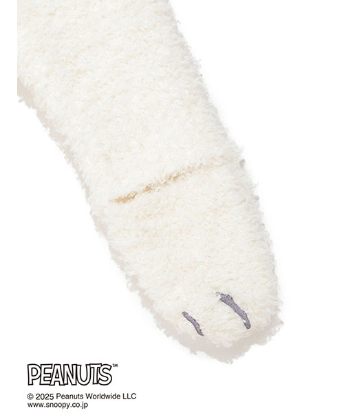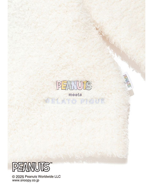 パピーのようにくるくるっとした糸で編んだ、キッズサイズのふっくらとしたジップパーカ。立体的な耳とマズルが付いたフードには、ニコニコ顔のスヌーピーを描いています。