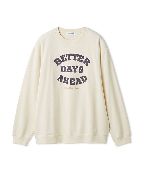 “BETTER DAYS AHEAD=より良い日々が待っている”という前向きなメッセージをプリントしたシリーズ。ベーシックなサイズ感のプルオーバーに、大きなロゴのフロッキープリントをフロントへ施しました。