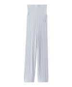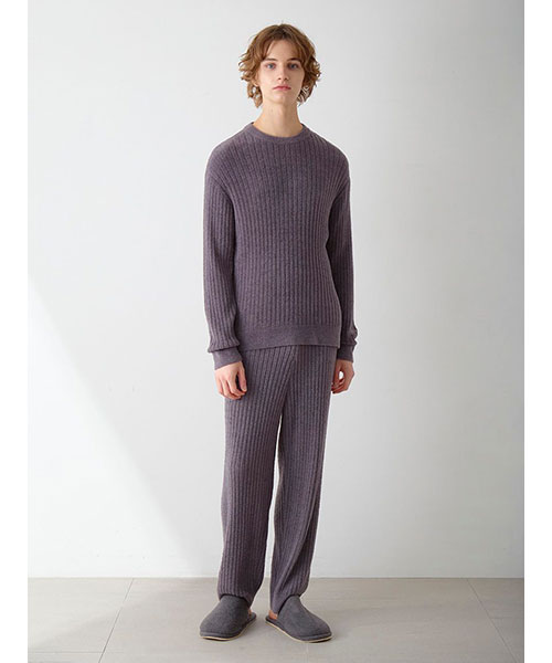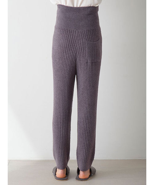 気温が変わりやすい時期に重宝する、‘調温スムーズィー’のリブニットを使用したシンプルなHOMMEシリーズです。なめらかな肌触りに癒されるロングパンツは、締め付け感のないウエストウォーマーをドッキングした温活に便利なアイテム。シルエットはゆったりしたストレートではきやすく、お腹や腰回りを調温糸でしっかりとカバーします。左腰にワンポイントでロゴ刺繍を添え、ベーシックな印象に仕上げました。色は淡いブルーと温かみのあるダークグレーの2色展開。同シリーズのプルオーバーやカーディガンと合わせてお楽しみください。