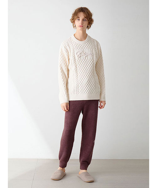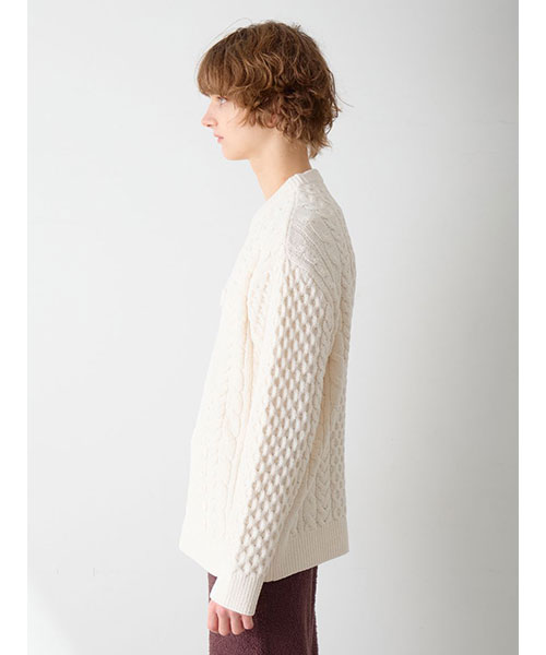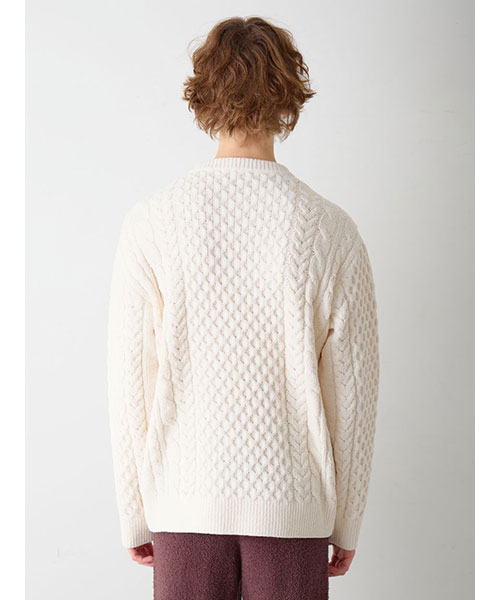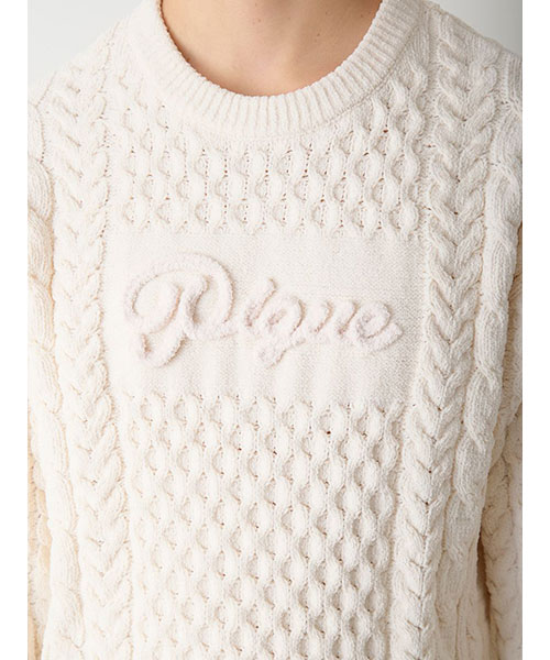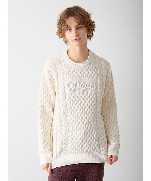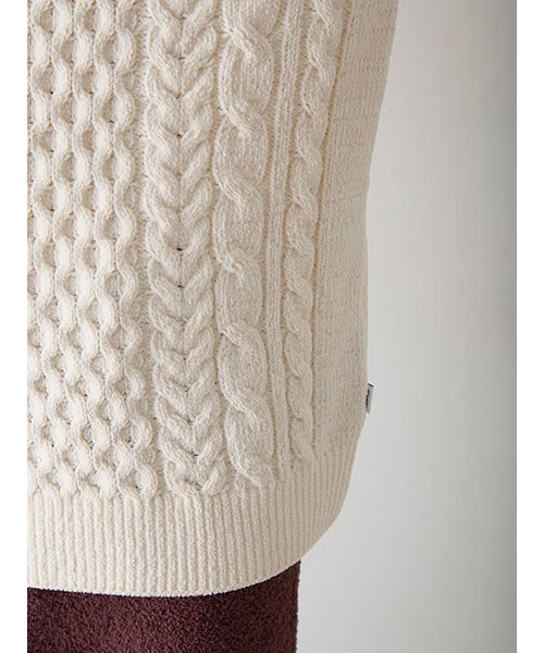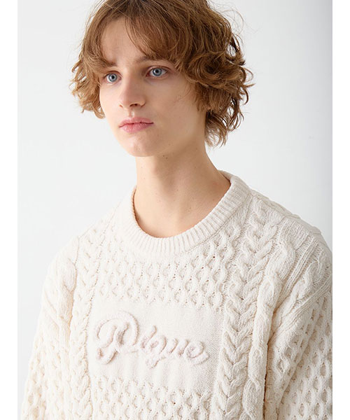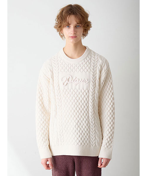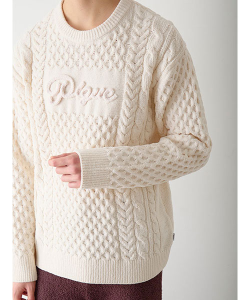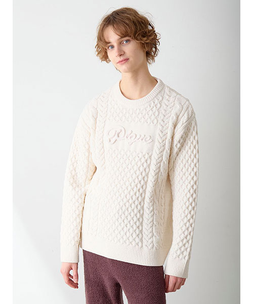 【ふっくらソフトなアラン柄のロープ刺繍入りプルオーバー】【Design/Styling】