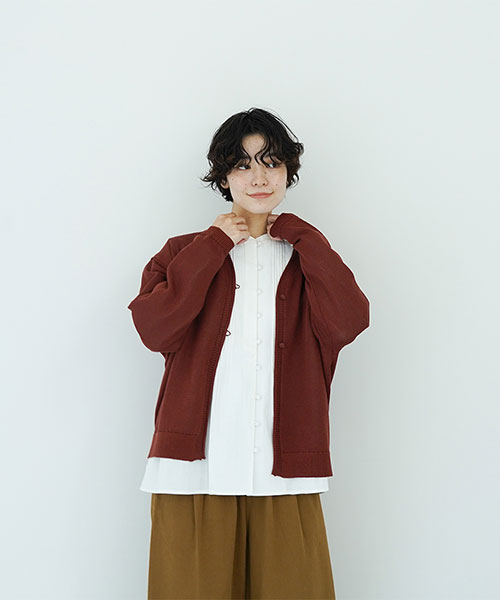 さらりと羽織るだけで印象に深みが出るカーディガン。ゆったりとしたシルエットがやさしく身体を包み込む一枚です。