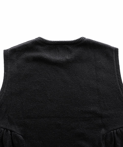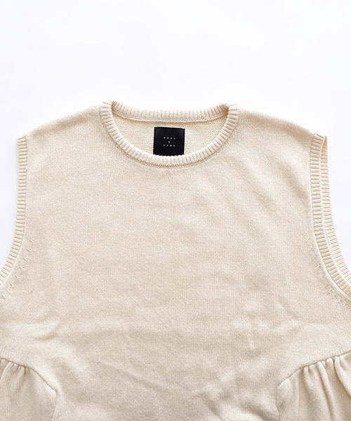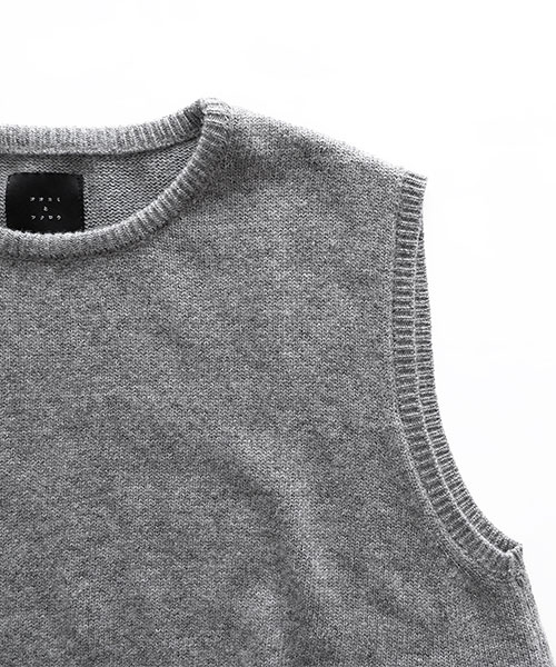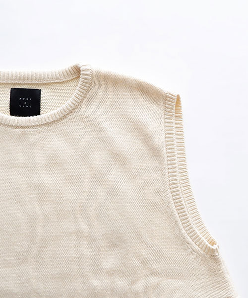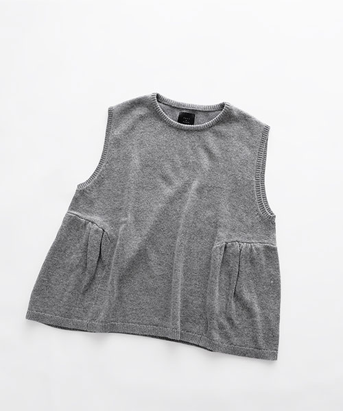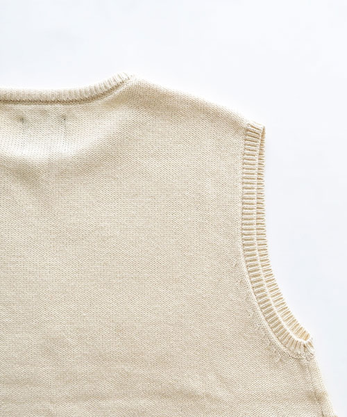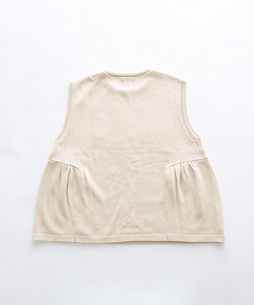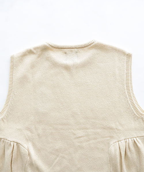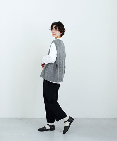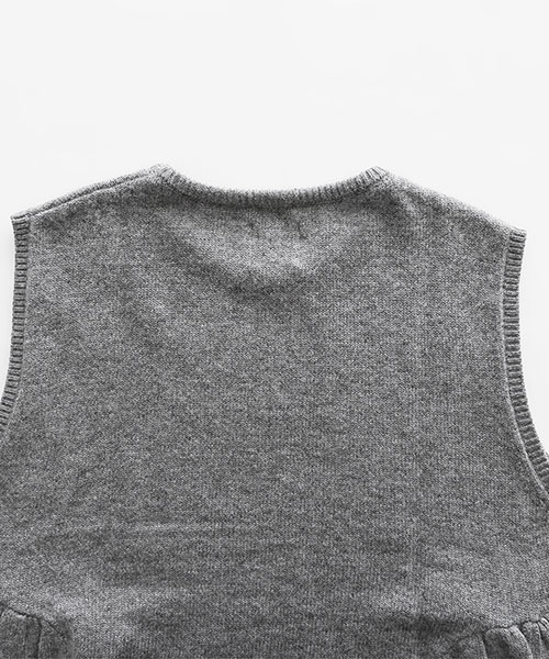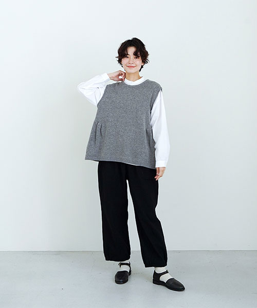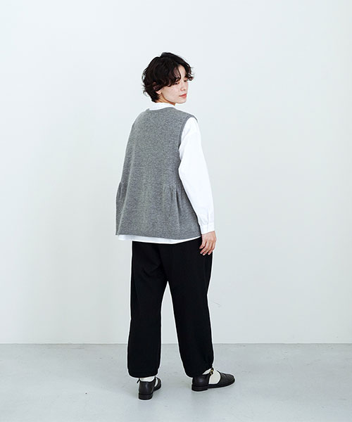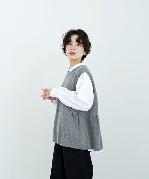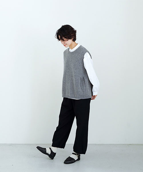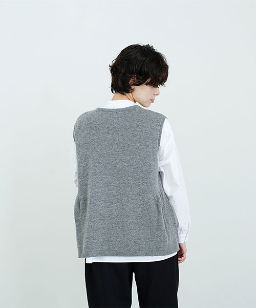 ふんわりとしたニットの表情がやさしい、ウール混のベスト。程よい厚みで軽く、シャツやワンピースの上に重ねてもごわつかず、すっきりとご着用いただけます。