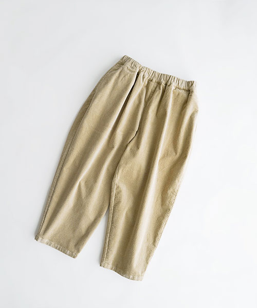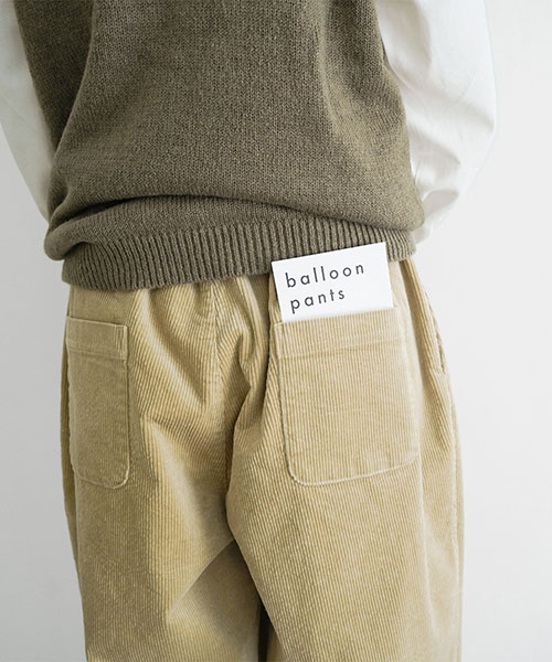 丸みのあるゆったりとしたフォルムが特徴のバルーンパンツ。ふくらみのある太腿部分から裾にかけてテーパードし、足首部分はコンパクトに仕上げました。