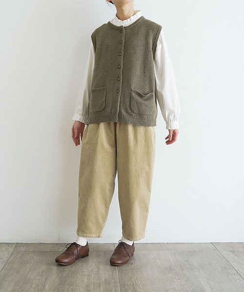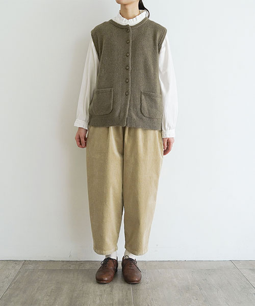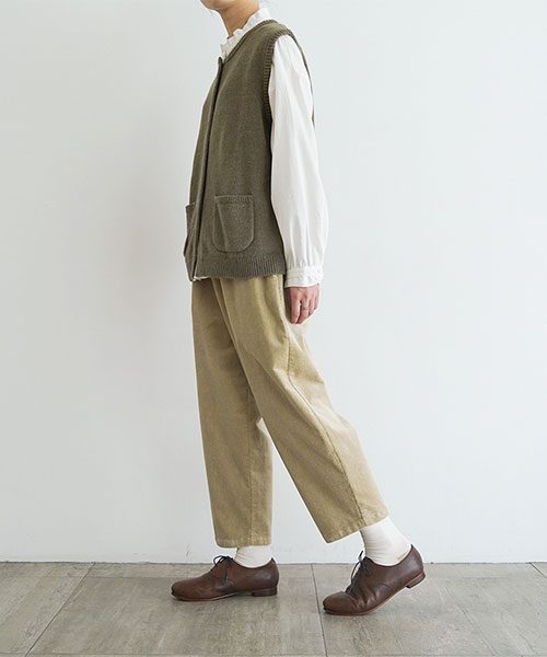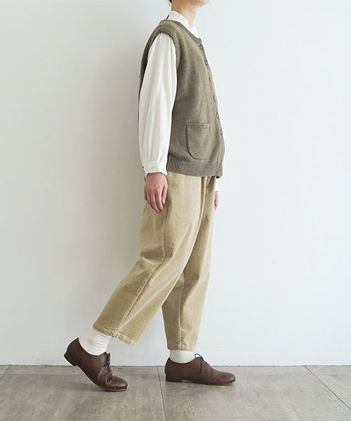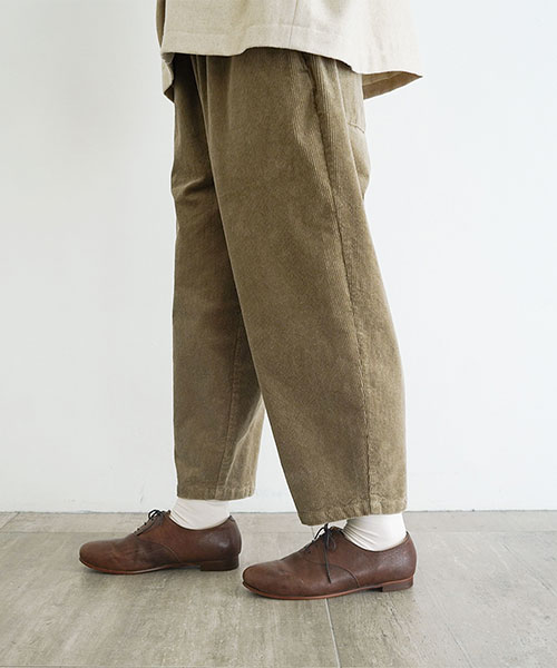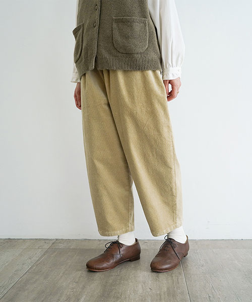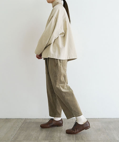 足首が少し見える丈感なので、靴下もこだわっていただける一枚です。