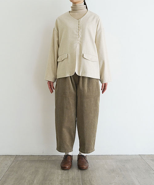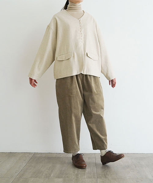 コーデュロイ素材で、秋冬にも暖かくご着用いただけます。
