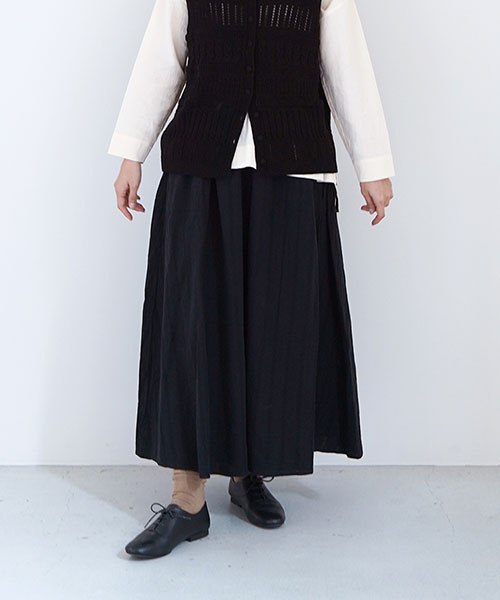 ふんわりと広がるシルエットが魅力のスカート。サイドのリボンで結んで着られるデザインです。