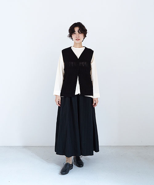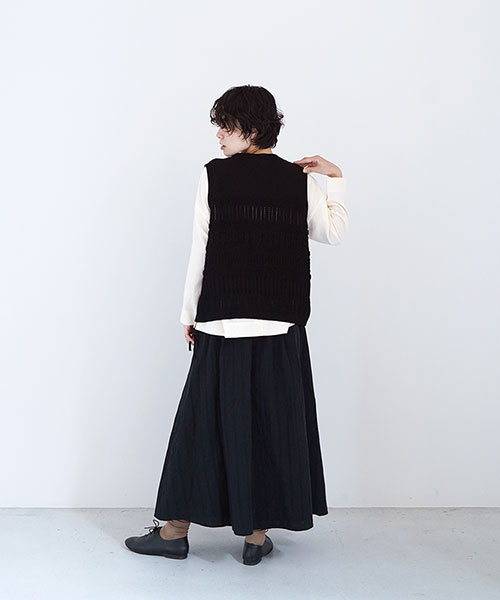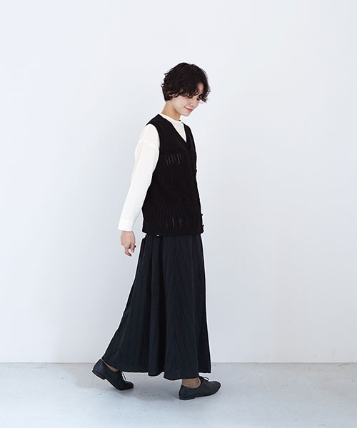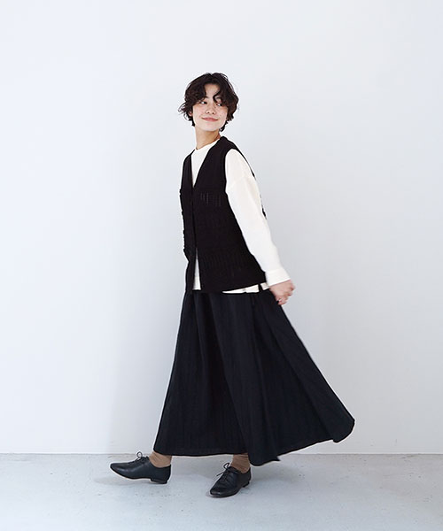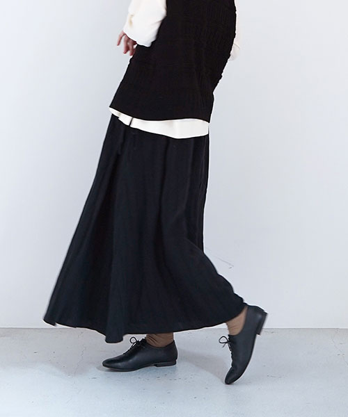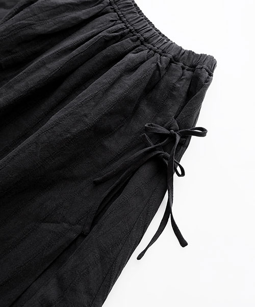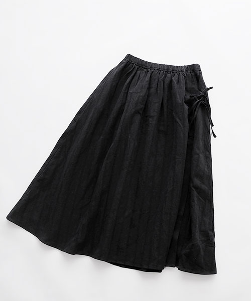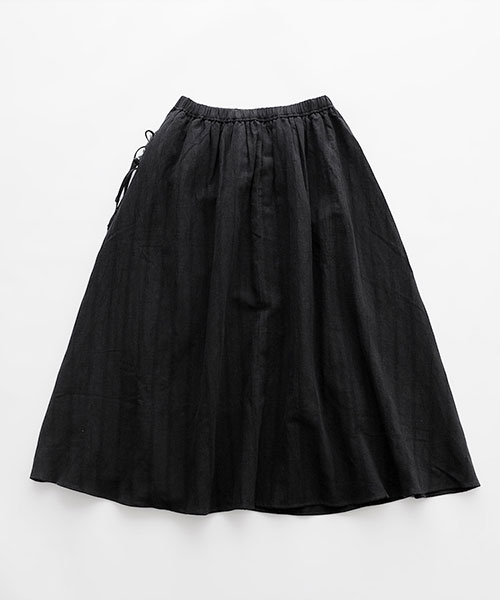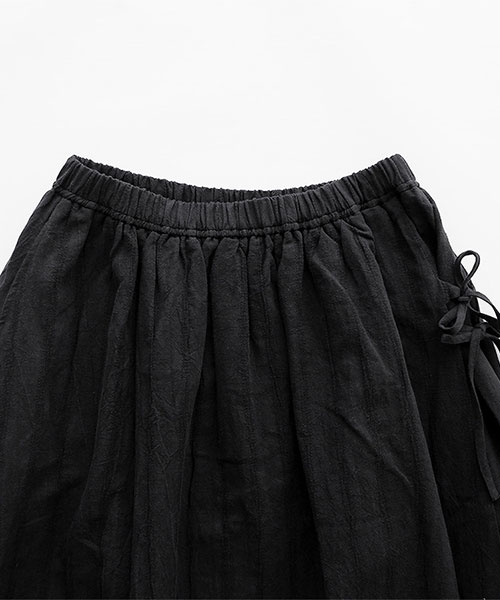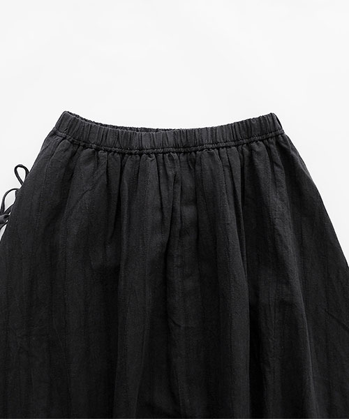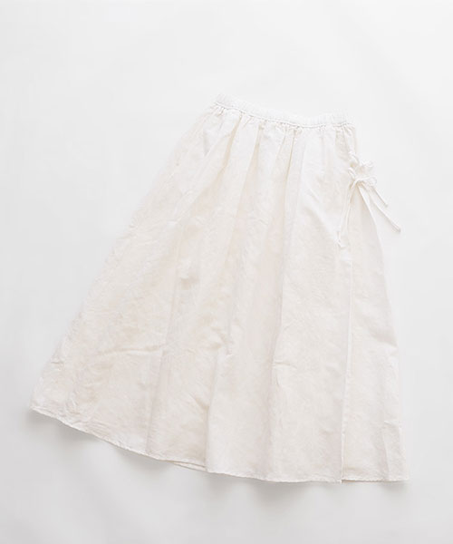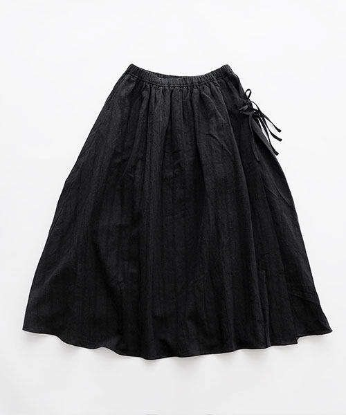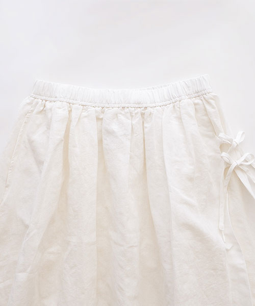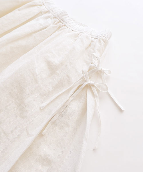 ふんわりと広がるシルエットが魅力のスカート。サイドのリボンで結んで着られるデザインです。