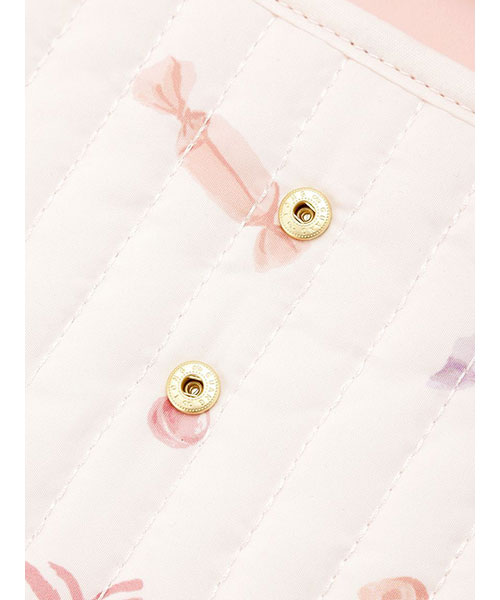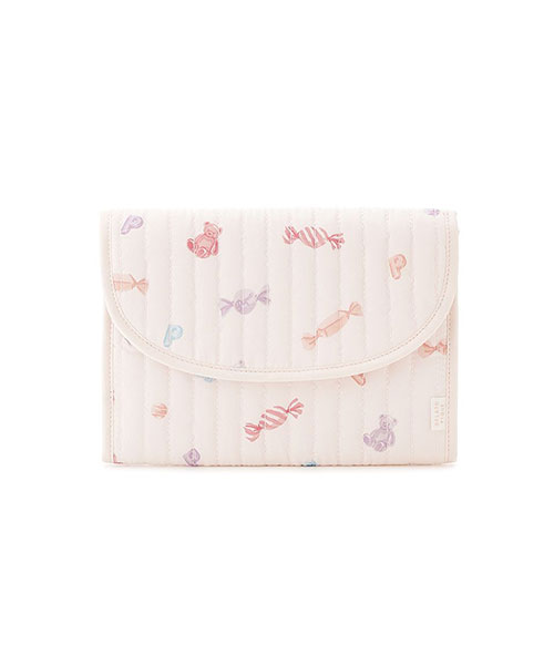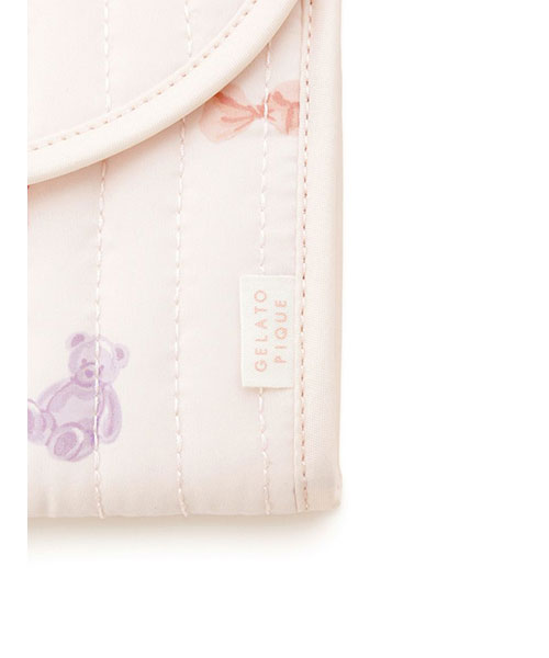gelato piqueらしいカラフルなベアやロゴをモチーフにしたキャンディ柄を、ふっくらした手触りのキルティング素材にプリントした母子手帳ケースです。程良い収納力でマルチに活躍するMサイズは、中身が見やすいジャバラ式の仕切り付き。カードスリットやファスナーポケットも付いており、母子手帳や病院の診察券、お金など必要なものをしっかりまとめられます。スナップボタンで厚み調整できるので、中身が急に増えても安心。裏地には抗菌防臭機能が付いた生地を使用しました。同シリーズのママバッグやKIDS、BABY小物と組み合わせたり、ルームウェアとのリンク・コーディネートもお楽しみいただけます。